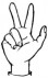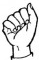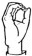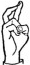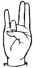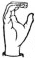 На ћирилици написано ВУКОСАВ КОРАЦА састоји се из 13 слова [?]. Исписано ћириличном једноручном азбуком за глувонеме: